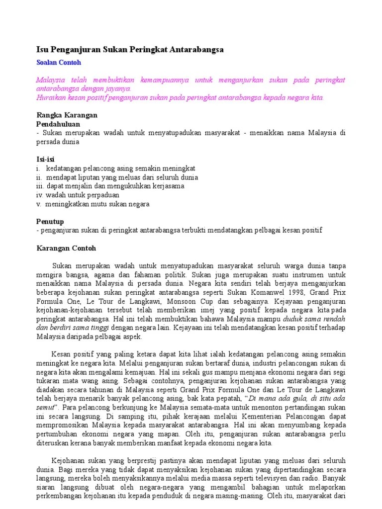 12 1 1 peranan sukan sebagai alat perpaduan dan keharmonian kaum sejarah tahun 6 malaysia di persada sukan. Laman bahasa melayu spm ulasan dan contoh jawapan karangan bahagian dimensi soalan 1 dimensi diri soalan 2 . Contoh karangan perpaduan kaum di malaysia melalui sukan pt3. 12 1 1 peranan sukan sebagai alat perpaduan dan keharmonian kaum sejarah tahun 6. Contoh karangan sukan ke arah perpaduan pt3.